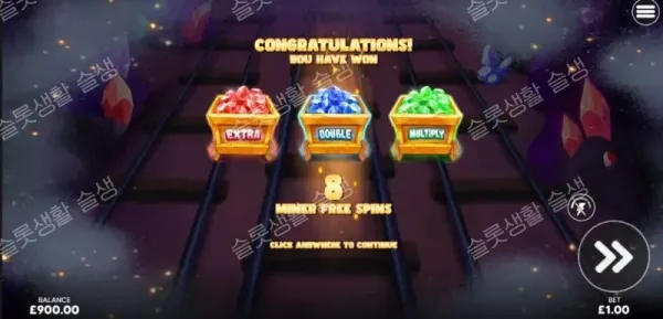 베이스 게임 중 보석 기호가 광산 수레(Minecart)에 수집되면, 해당 색상의 광부 능력이 극대화된 8회의 프리 스핀이 시작됩니다.