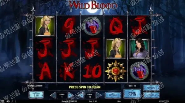 와일드 블러드(Wild Blood)는 현대적인 화려한 이펙트보다는 클래식 비디오 슬롯의 기믹들을 충실히 모아놓은 고딕 어드벤처입니다. 3번 릴에 뱀파이어가 거대하게 확장하며 리스핀을 유도하는 쾌감과, 피가 담긴 병을 하나씩 선택하며 폭발을 피하는 '지뢰찾기' 스타일의 보너스 게임은 슬롯의 고전적인 묘미를 잘 살려줍니다. 갬블 기능을 켤 수 없다는 오토 플레이의 단점과 명확하지 않은 RTP 지표는 아쉬운 부분이나, 최대 6,000배의 상금과 50회의 프리 스핀 연장(Retrigger) 한도는 다크 판타지 매니아들을 유혹하기에 충분한 매력을 지니고 있습니다.