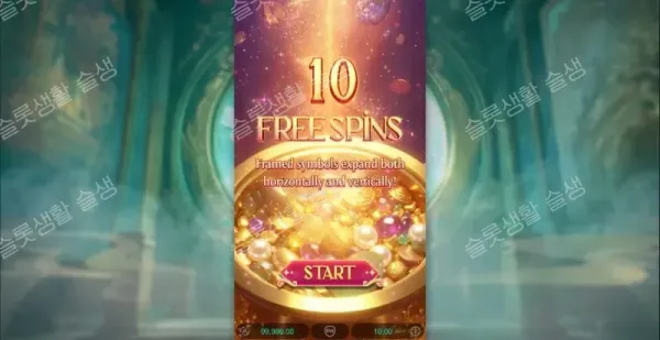 베이스 게임 중 화면 어딘가에 스캐터 기호가 3개 랜딩되면 10회의 프리 스핀이 주어지며, 추가 스캐터 1개당 2회의 스핀이 더 부여됩니다.
