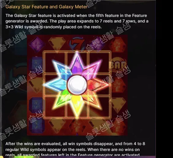피처 제너레이터를 충전해 은하계의 별들을 와일드로 바꾸는 순간, 당신의 스크린은 상금으로 폭발할 것입니다!"