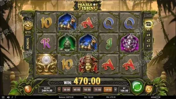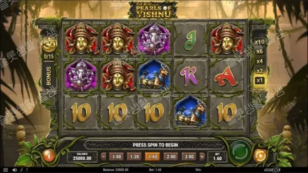 릴에서 15개의 토큰 심볼을 수집하면 힌두 신의 권능을 시험하는 보너스 게임이 시작됩니다.