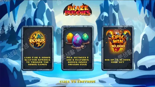 꽁꽁 얼어붙은 설원 속, 숨겨진 보물을 찾아낼 뜨거운 용들이 찾아왔습니다! 백세트 게이밍(Backseat Gaming)이 선보인 블레이즈 버디즈는 귀여운 네 마리 용 친구들이 눈을 녹여 보물을 찾아내는 신비로운 모험을 다룹니다. 5x4 그리드와 96.37%의 높은 환수율을 바탕으로, 플레이어가 직접 보너스 기능을 선택하는 전략적인 재미와 함께 최대 10,000배의 승리를 거머쥐세요.